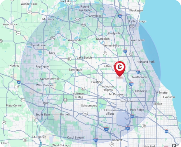 We serve residential areas within a 15–20 mile radius and extend coverage for commercial projects, including downtown Chicago for larger accounts.